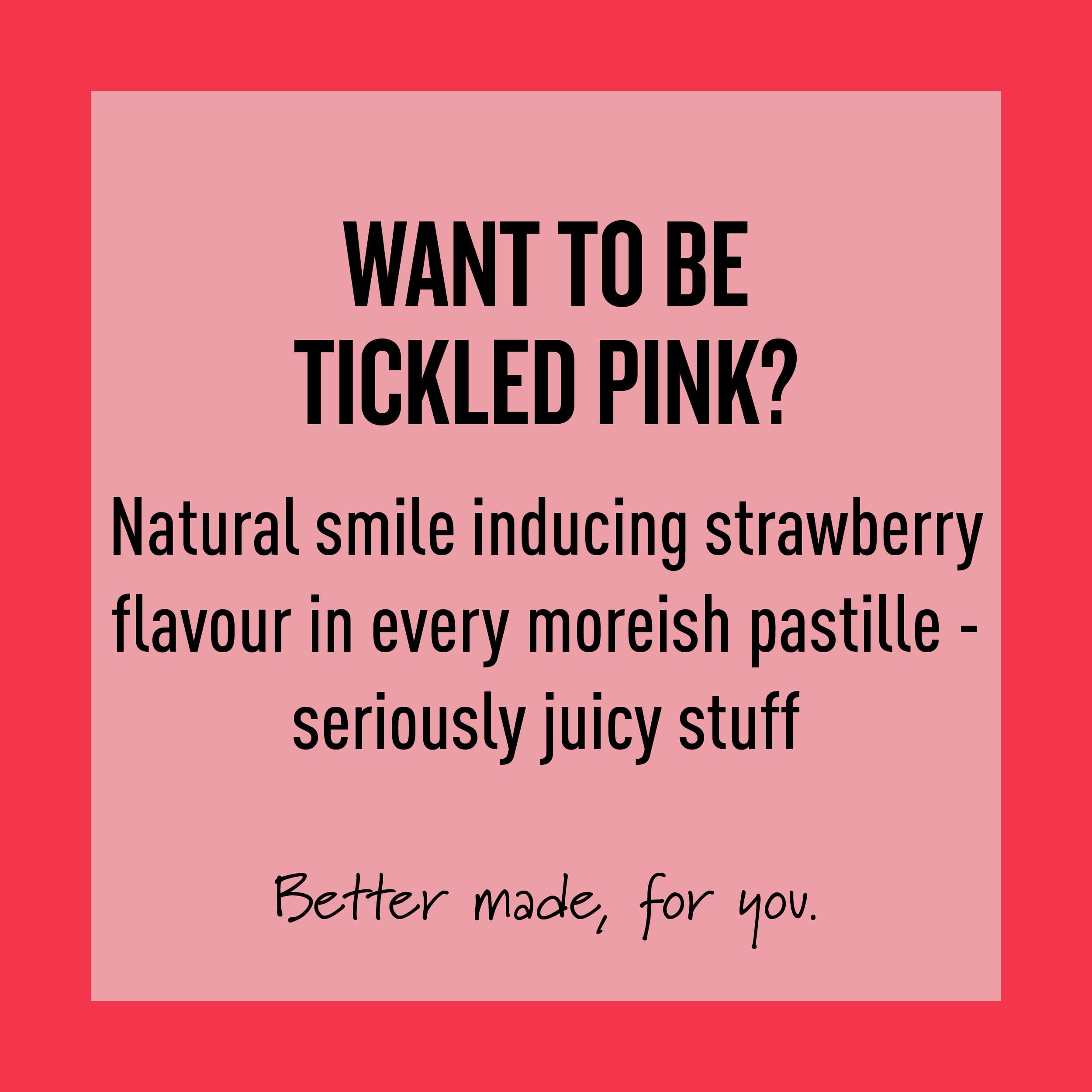 Our deliciously round strawberry mints offer a tasty little burst of British summer. Full of natural strawberry flavour and a dash of vanilla for that extra oomph.
