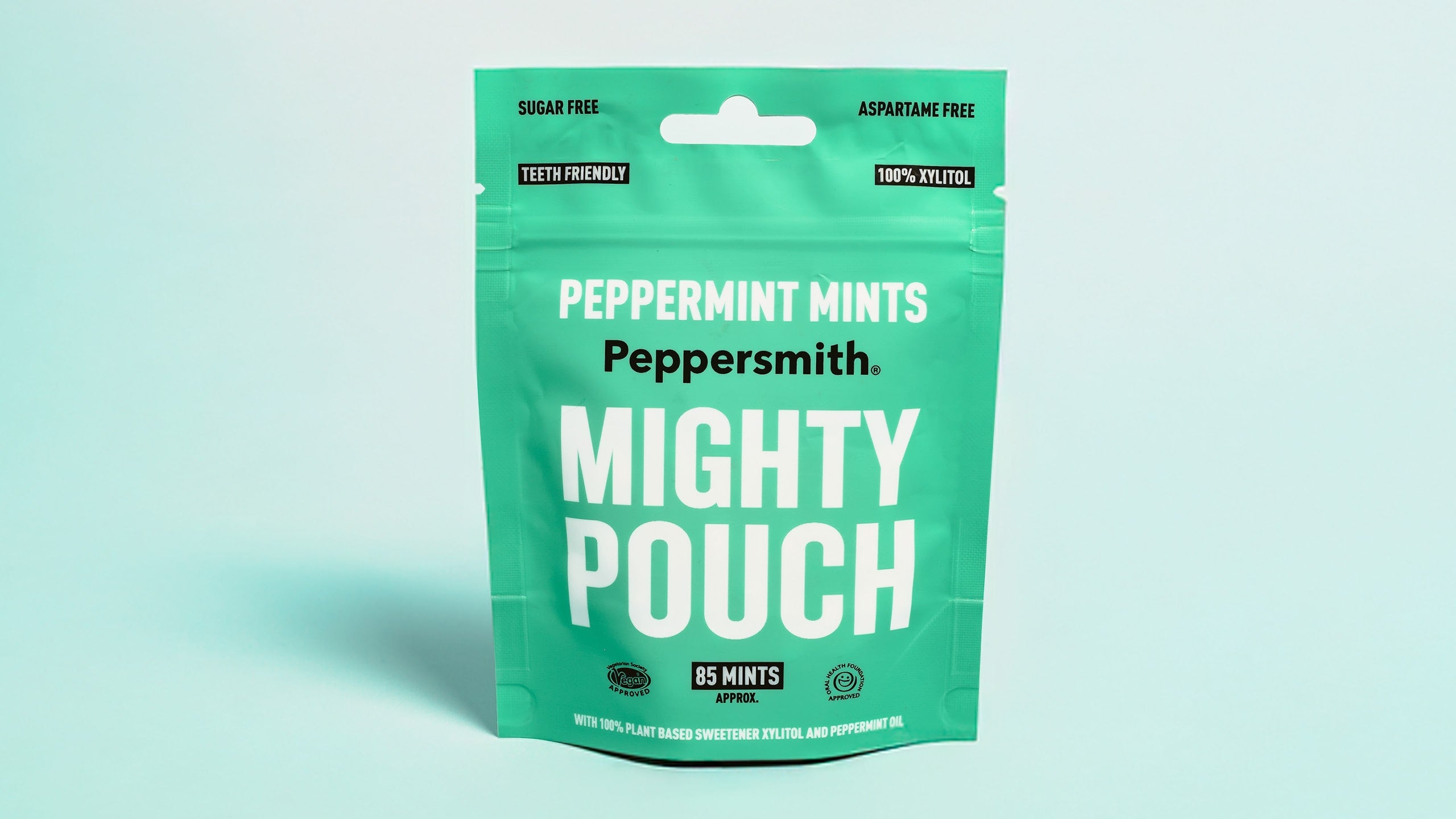 Our Mighty Pouch mints are the perfect choice for when size really does matter. We've supercharged the packet to include 85 of your favourite peppermints. They’re the perfect size for all the family to enjoy on long car journeys, keep in your travel bag or have as a desk buddy - ready to freshen you up just when you need it.